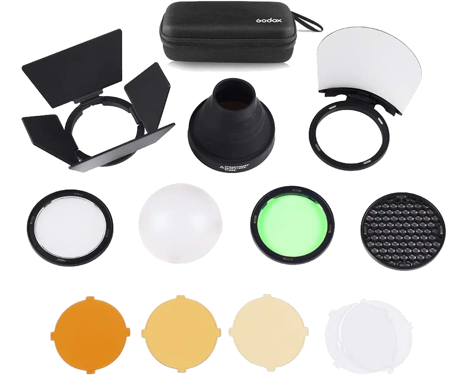 I like what Godox have tried to do with the magnetic rim. Ie. To try and compete with Magmod. However, I’ve found in the real world that the AK-R1 kit falls well short of the well designed and well thought out Magmod system. For example, the grid doesn’t narrow the beam well enough. The AK-R1 white card makes up for the fact the V1 doesn’t have a white card built in. But in practice it’s a pain to have to carry it around and it then falls off constantly in the bag. The best tool is the dome which I love using instead of the Magsphere. So much lighter and more convenient. The Snoot….gels, barn doors, I never use them