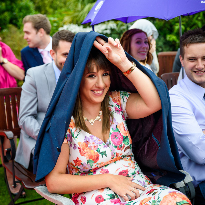 For guys, you can err on the side of caution by wearing a suit with a tie. You can always remove the jacket and tie if others have and it’s a really warm summer day. The suit jacket also can double as a handy rain cover for your other half should the heavens open up mid ceremony!